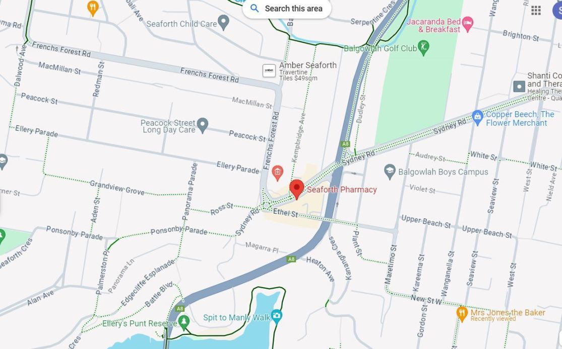 We are located in the Seaforth shopping strip on Sydney Road